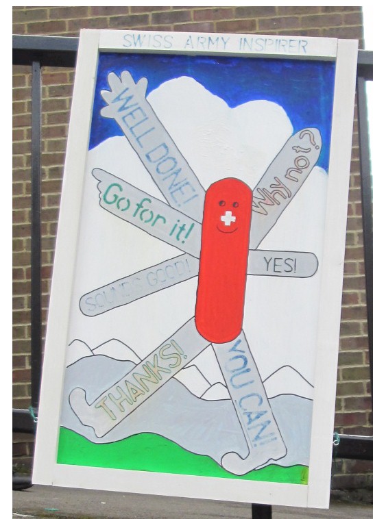 SWISS ARMY INSPIRER There’s some good news, and some bad. In the remote part of Berkshire where I live, Bracknell is getting a massive makeover. It’s like Armageddon with a promise of Primark. But since March, thousands of people have had something unique and seriously eyecatching to enjoy, a new art and soul for the town centre . And it’s got lessons for you - at work and in family, leisure and social life (assuming you have some). By the busy mall of Princess Square, St Joseph’s Catholic Church has railings that make a wide balcony. This is now the home of the Bracknell Community Gallery of Greeters & Inspirers. Unlike the National Galleries, it’s outdoors, on view 24/7, with no queues or booking (but NB no caff). Visit www.bracknellcommunitygallery.org Over 30 portraits are there, hooked on and strapped down against gusts of wind. They were quite an experiment in social psychology. I issued a general invitation for anyone to paint - in acrylics on plywood 600mm x 1000mm - someone who inspired them for whatever reason. All sorts of good sports in schools, families, and elsewhere volunteered – though most had never picked up a paintbrush. Their array is delightful. Mandela, Malala, and Mahatma Gandhi you’d expect. But there’s also Harry Potter (perhaps edged out by Emma Watson for championing women’s rights), Tim Burton, teacher Ann Maguire, tenor Richard Tauber, conciliator Daniel Barenboim, “Monty”, Van Gogh, a cheery Oscar Romero and Pope Francis, the Fairtrade waving figure… Healthcare-related Inspirers feature too. Henri Dunant of the Red Cross has one arm of the Red Cross tilted upwards in greeting, while the annual candlelight procession at Solfarino warms his feet. Staff in Medecins Sans Frontieres’ UK office made a mosaic of their palm prints, in solidarity with Ebola survivors in West Africa. Photographer and triple amputee Giles Duley is one of a dancing team called The Unselfies on Tour in Afghanistan, together with the US Army Medics - Charlie, Phil and Cole - who saved his life, plus trauma nurse Lucy Anning of Emergency UK. My Swiss Army Inspirer is art with its sleeves rolled up. The blades are some of the expressions that help encourage other people in any setting – standard vocab for managers, leaders and good eggs. Well Done! Go For It! Sounds Good. Thanks! Why Not? Yes! You Can! (The good news is that everyone’s got one tucked inside them.) The passing public like the Gallery for adding a lot of offbeat brightness to Bracknell. More’s on the way, with schools painting panels of flowers and kisses to mark Malala’s 18th birthday (and cover up some wrinkled brickwork.) So when you’re with family or friends, maybe you might find the back of an envelope or tablet and write down a short list of people you value as an Inspirer or Uplifter, and why. Then get several pages of A4, and catalogue your Uninspirers, and why. Then swap lists. Well done if you’re someone else’s Inspirer. You’re name is on an Uninspirer list? Like I said at the beginning… |