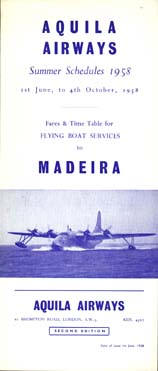 ![]() Short Solent set for family - note the cot, curtains, big windows and crockery. Brochure for Madeira flight schedule - the diversionary landing place if Southampton Water was blocked out by weather (frequent). ![]() The aviation museum at Southampton includes a Solent that you can walk around inside - plus lots of other good planes. Highly recommended for day out.