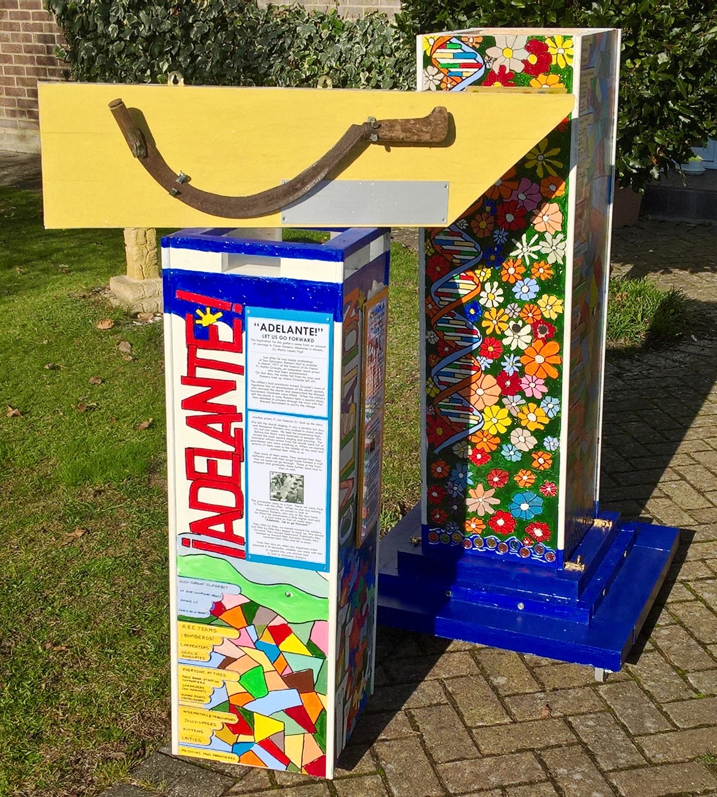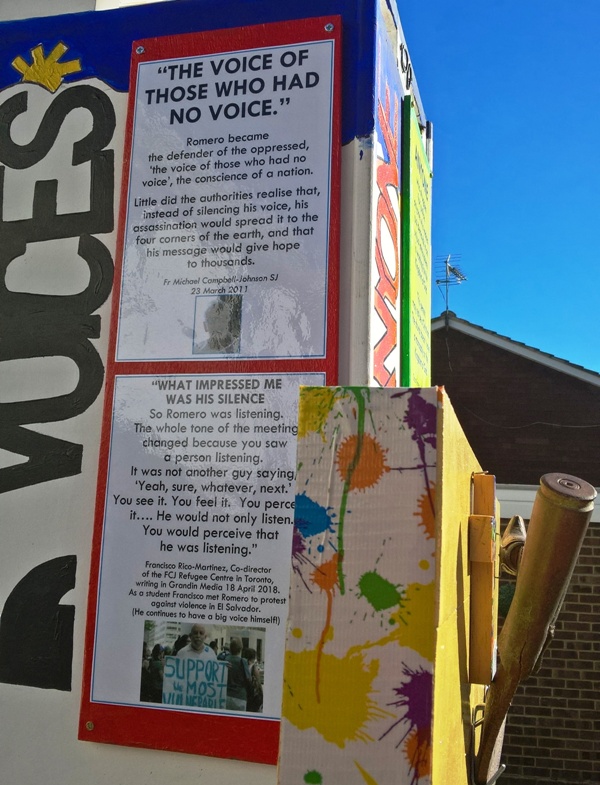 Much admired round the world by people of all faiths and none, Romero later became an official Catholic Saint. But most people can point to what you might call catholic Unofficial Saints: inspirers, encouragers, uplifters, initiators, wave-makers; nearby or far off; who see things can change for the better; helping others go forwards by words or action. And that's what the Adelante Gallery is about. "The Saints Next Door”, says Pope Francis – one of the many voices to enjoy by anyone walking around the four faces of the 2+ metre tall Adelante Gallery.