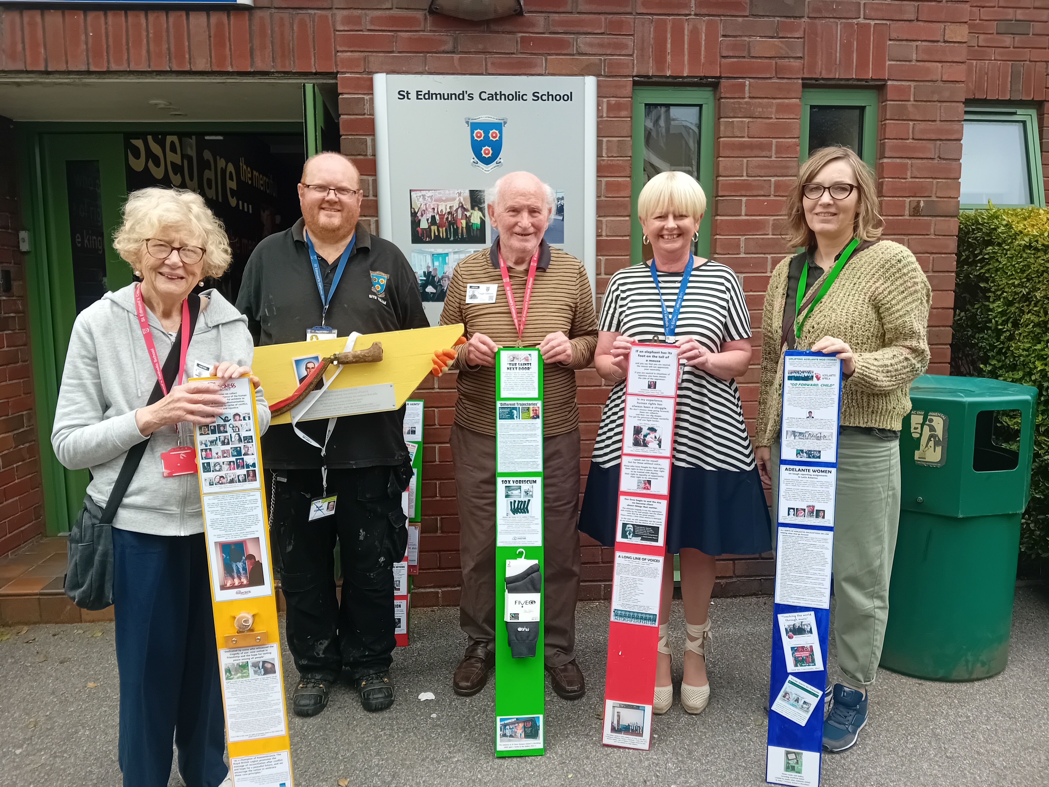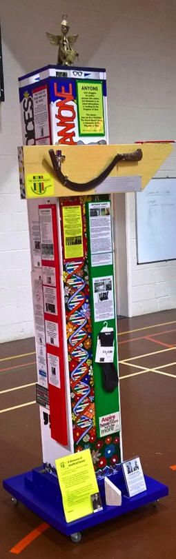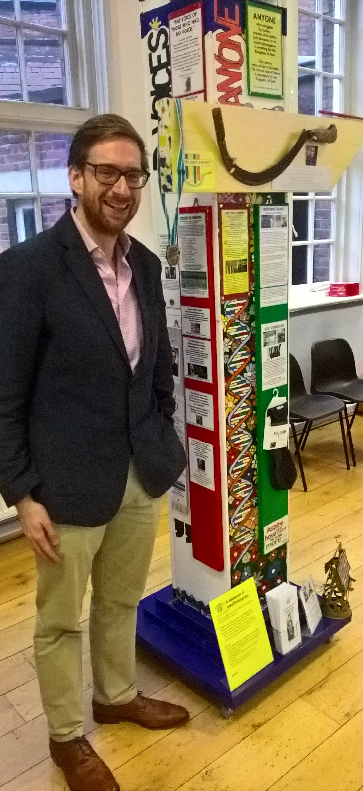 ![]() ![]() The Gallery comes in several sections that are easy to lift and assemble. Small castor wheels on the base mean that it's easy to move around in a church or school setting - and travel around in the back of a family car. ![]() Here's the line-up of detachable panels after its stay with Chaplain Fiona (to the left of Hugh) at St Edmund's School in Portsmouth - with other helpers Anne Gibbons, a school support worker, and a new assistant chaplain. |