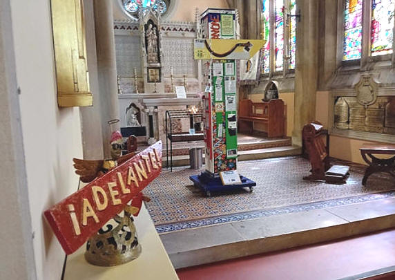 Adelante is home-made. By a very amateur artist, carpenter and designer - a former CAFOD volunteer. Squeezed in his garage at home. But something seriously different to enjoy, appreciate and learn from. And very ecumenical. On wheels.