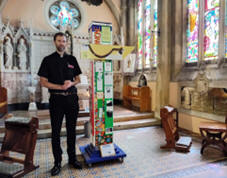 ![]() INSTRUCTIONS FOR GALLERY SETTING UP AND TRAVEL 1-page PDF to download or browse on-screen ![]() The Chaplain at St Oscar Romero School in Worthing showed that the Gallery does indeed fit in the back of a small car - handy when he took it out for visits to local primaries. ![]() How tall is the Gallery? About a deacon and an eighth, judging by this picture of Tom Hiney in the Lady Chapel of St Edward the Confessor Church in Windsor in August 2023. He's about 6'4", and a great help in lifting the parts into place. |