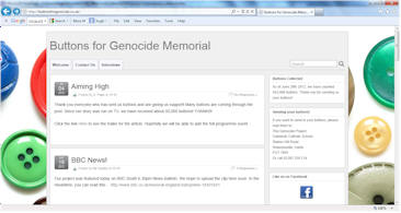 Genocide Project You can get updates and also hear radio interviews at www.buttonsforgenocide.co.uk There's also a BBC News report at http://www.bbc.co.uk/news/uk-england-hampshire-18491841