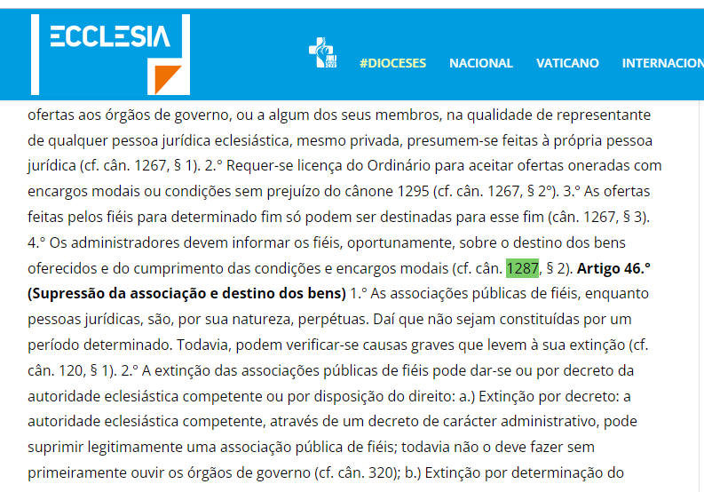 Portugal's wesbite Ecclesia has its Normas Gerais das Associações de Fiéis: General Standards of Faithful Associations dated May 2008, and seen in 2021 and 2022. “Os administradores devem informar os fiéis, oportunamente, sobre o destino dos bens oferecidos e do cumprimento das condições e encargos modais (cf. cân. 1287, § 2)”